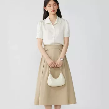 High Waist Wool Plaid A-line Pleated Skirt for Spring and Autumn